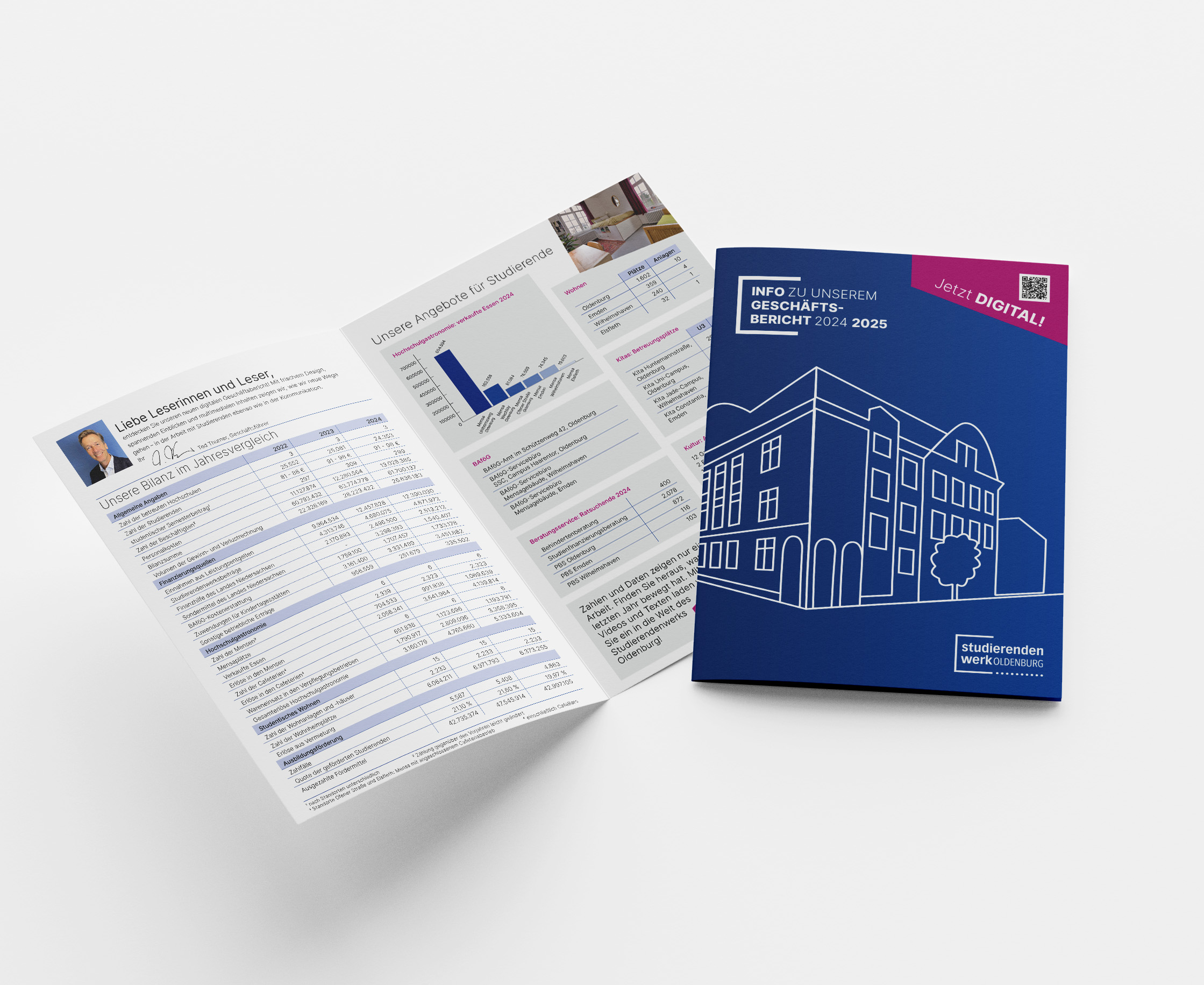 Das Studierendenwerk Oldenburg wollte mit seinem „Geschäftsbericht 2024“ neue Wege gehen und erstmals eine rein digitale Fassung veröffentlichen. Zum Go-live sollte ein kompakter Begleitflyer die Stakeholder per QR-Code direkt auf die neue Website führen. Ziel war es, den Geschäftsbericht moderner, zugänglicher und multimedialer zu gestalten – mit einem frischen Design, interaktiven Inhalten und einer nutzerfreundlichen digitalen Struktur.