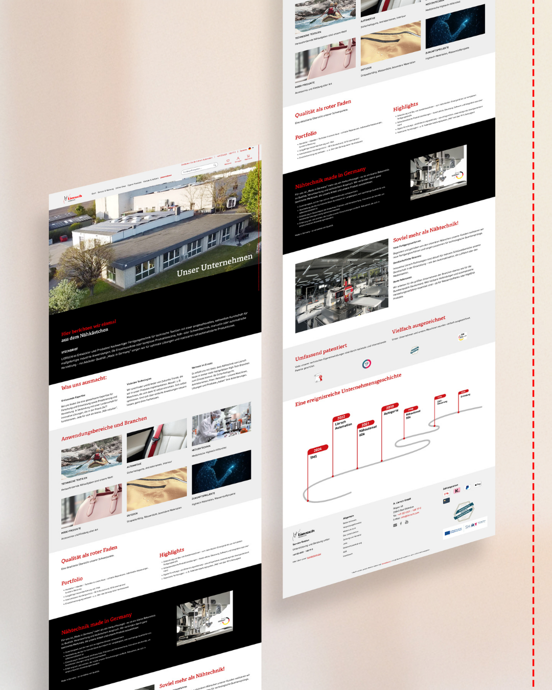 LIERSCH entwickelt und produziert seit 80 Jahren Fertigungstechnik für technische Textilien – von Hochleistungsnähmaschinen bis zu automatisierten Komplettsystemen für „Extreme Sewing Applications“. Über die Jahrzehnte entstand ein verzweigtes Portfolio aus Entwicklung, Service und Handel.