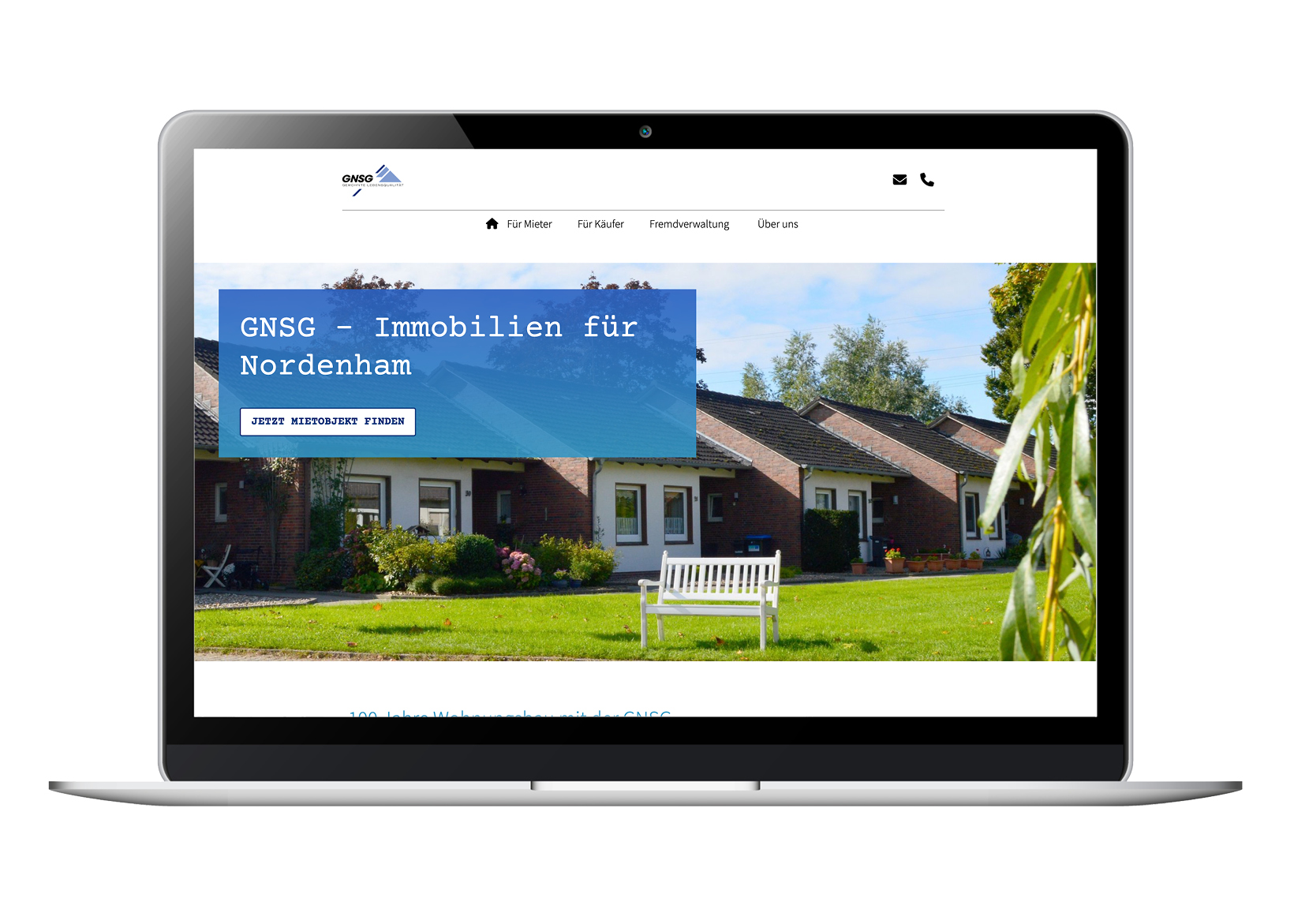 Ein wichtiges Thema waren auch die eigenen Immobilienangebote. Bisher gab es einige Hinweise zu aktuellen Mietangeboten, aber ein Großteil wurde über entsprechende Immobilienportale gepflegt und ausgeschrieben. Hier prüften wir mit dem Kunden gemeinsam, ob sich eine eigene Datenbank lohnt und wie der Pflegeaufwand auch für weitere Portale sich klein halten ließe. Am Ende entschied man sich für die umgekehrte Lösung und setzte eine Immo-Scout-Integration auf der Seite ein. So blieb die Pflege der Objekte, die schnell wechseln, wie gehabt. Finden kann man diese nun aber auch über die Seite der GNSG direkt.