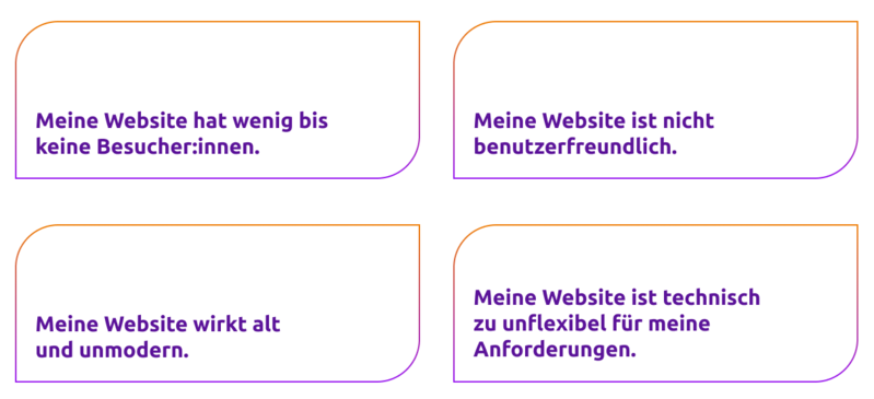 Die ersten drei Sekunden entscheiden, ob die Besuchenden zu interessierten Leser:innen werden, oder – bei schlechter Nutzerführung, wenig passendem Content – direkt wieder abspringen. Es genügt heute nicht mehr, “nur” technisch sauber und gestalterisch zeitgemäß aufzutreten. Ihr Website-Content muss inhaltlich aktuell sein, um dauerhaft wirksam zu performen. Die fortlaufende Pflege Ihrer Website ist ein unerlässlicher Teil der modernen Markenführung: Nur, wer sich flexibel anpassen kann, wird Sichtbarkeit und Reichweite generieren, die Zielgruppe treffsicher ansprechen und sie mit relevanten Inhalten und echter Usability begeistern.